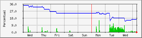 (em verde: % de espaço livre. Em azul: % de espaço ocupado) | |