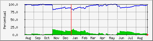 (em verde: % de espaço livre. Em azul: % de espaço ocupado) | |