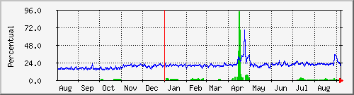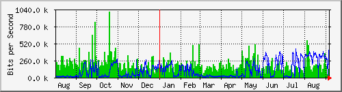 (em verde: tráfego recebido. Em azul: tráfego enviado) | |